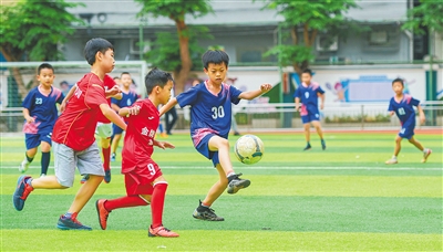 海口市英才小学学生参加校园足球联赛。海南日报全媒体记者 张茂 特约记者 王聘钊 摄